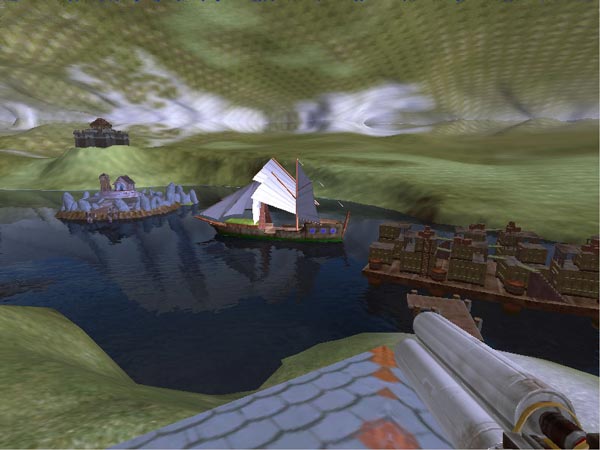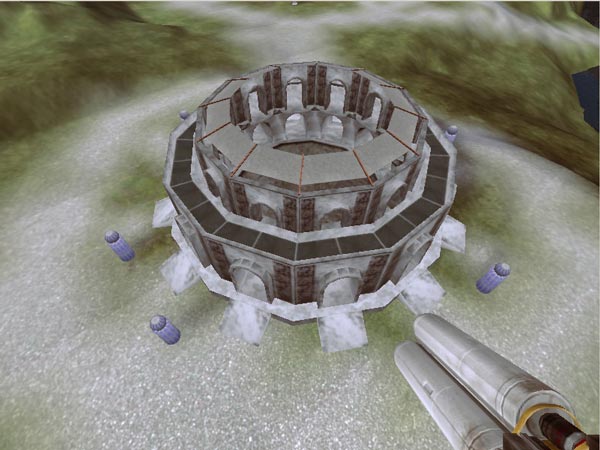 Okay, so it's basically something hacked together with Torque, but I mean come on! It's shiny, with pretty colors. The whole game is built in Torque Game Engine Advanced, made by Garage Games, and uses polysoup collision detection from the community. All assets you see in-game with the exception of the character and weapon model were created exclusively by me and most can be seen on my portfolio site.